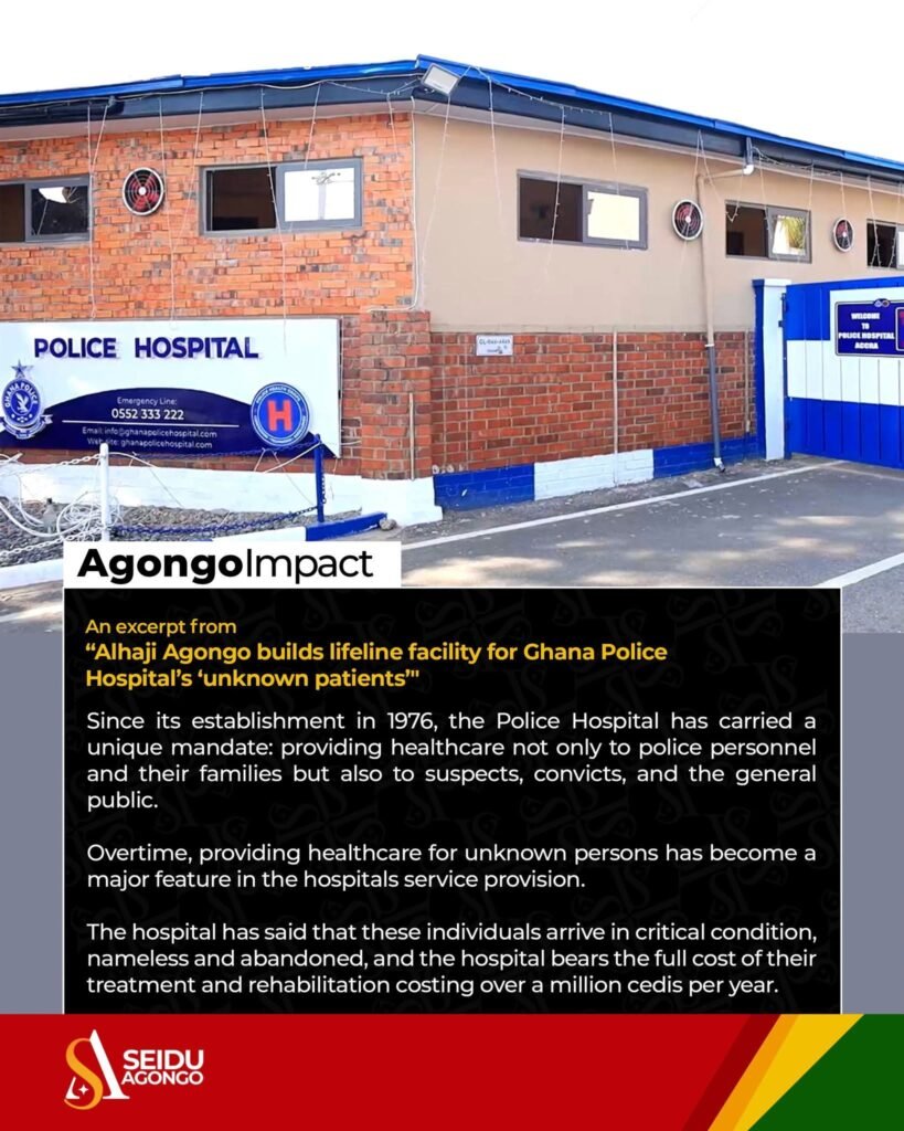 Businessman and philanthropist Alhaji Seidu Agongo has constructed and handed over an eight-bed facility to the Ghana Police Hospital to provide dedicated care for vulnerable individuals brought to the hospital without identifiable relatives, otherwise known as “unknown patients”.