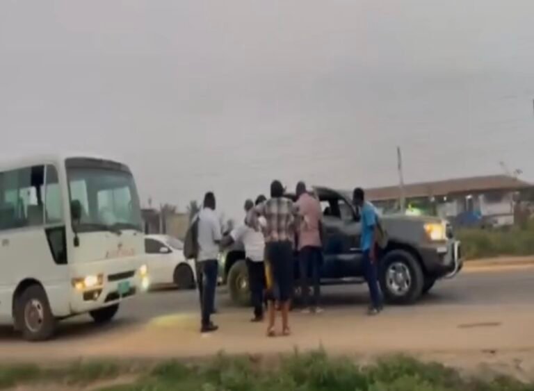 According to an eyewitness account, some staff of the Energy Ministry, while traveling from Kasoa to the office on board an official bus, came across a pickup truck parked very close to the middle of the road, making it difficult for the Ministry’s staff bus to exit into the main road. Upon the bus exiting into the main road, a staff member on board the bus informed the driver of the pickup that he had parked wrongly. When the bus moved, the pickup allegedly followed and crossed the Ministry’s bus at top speed. The driver of the bus maneuvered but was crossed a second time. The video from the incident shows the occupants of the pickup truck, who have now been confirmed to be police officers, attacking some members of the Ministry through the window of the bus.